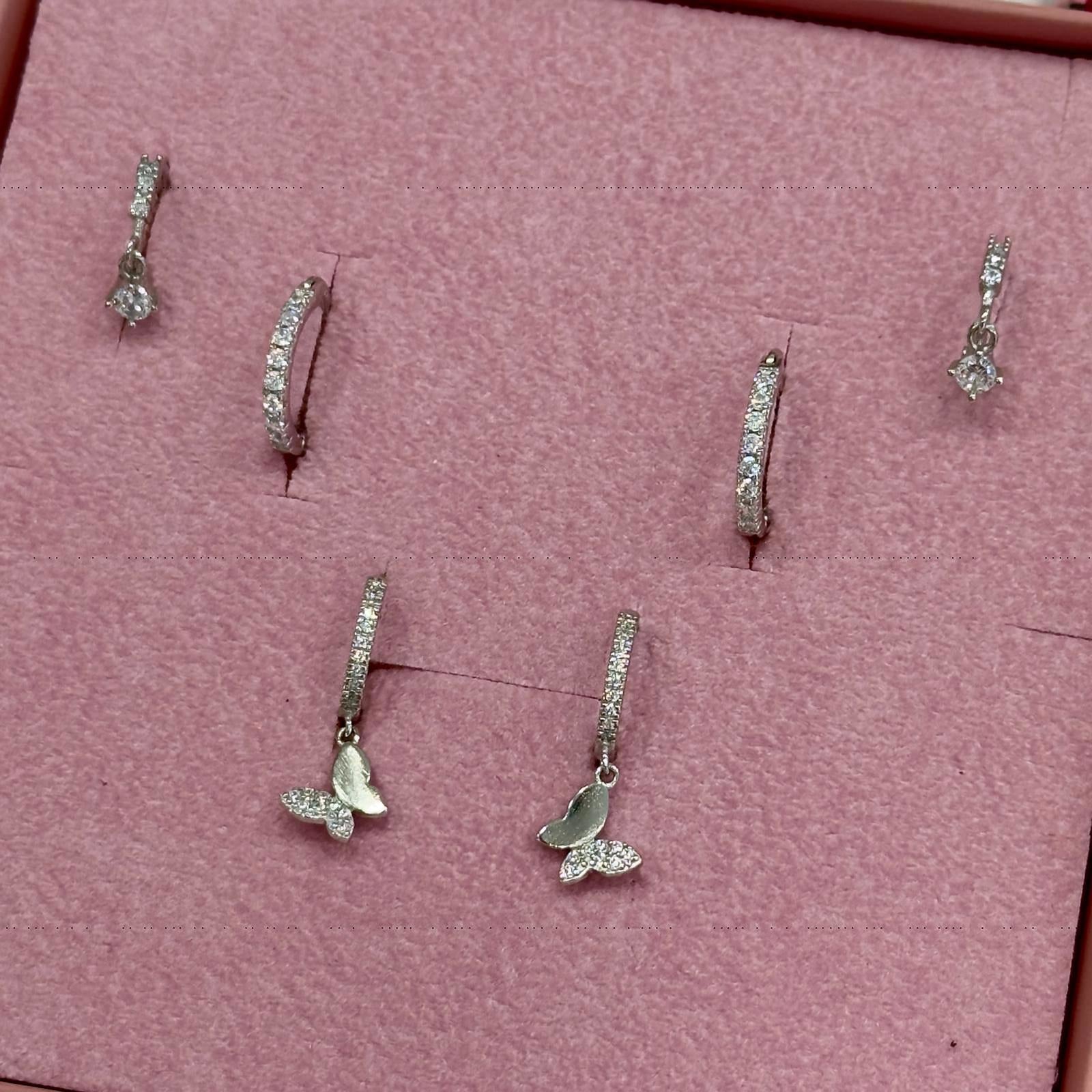 Set composto da 3 coppie di orecchini in argento %925 e cristalli cubic zirconia.